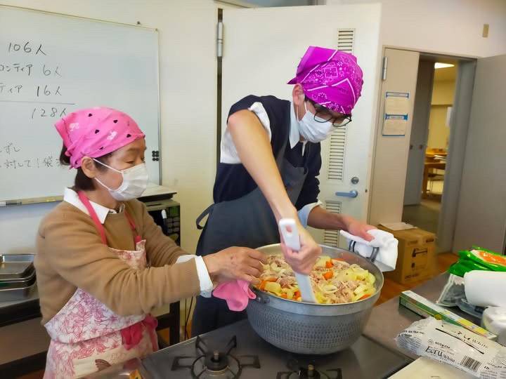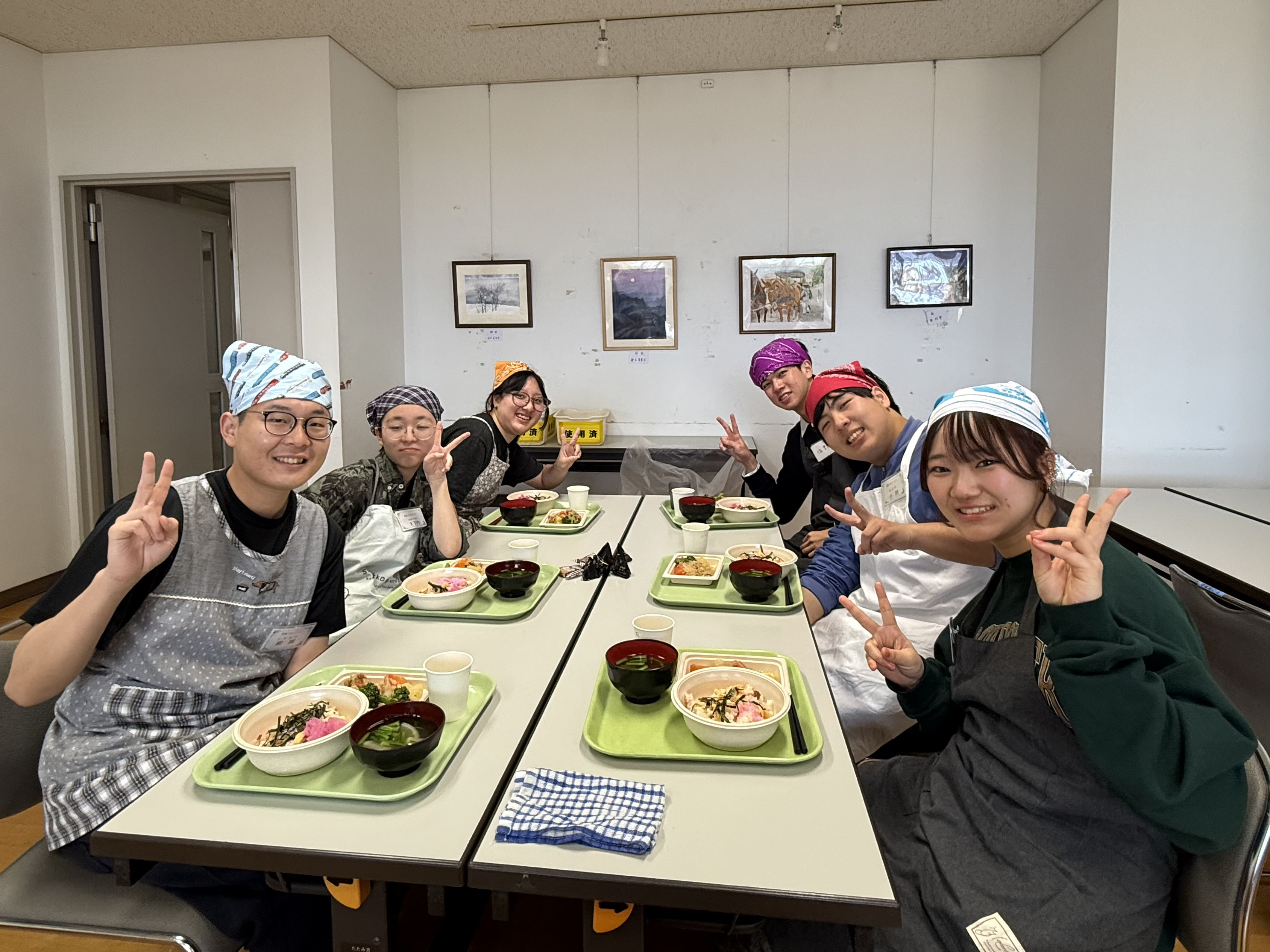 地域の方々に優しく教えていただきながら調理をしたり、ホワイトボードにメニューなどを描いたり、配膳や受付、机の準備、片付けをしたりと、毎回楽しく参加させていただいております!