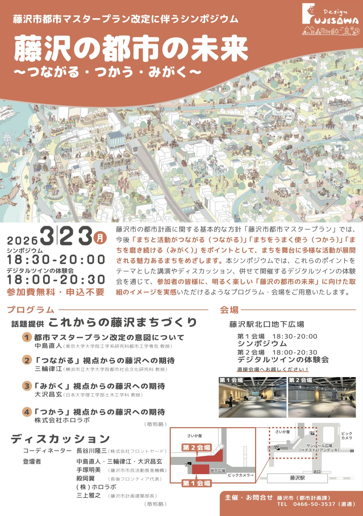 3月23日(月)18時30分~20時00分まで藤沢駅北口地下広場にて、藤沢市都市マスタープラン改定に伴うシンポジウムが開催されます!
